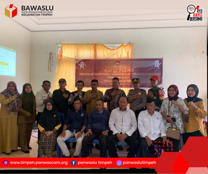 Hari Senin, 5 Juni 2023 Panwaslu Kecamatan Timpeh menghadiri acara Rapat Pleno Terbuka Rekapitulasi Daftar Pemilih Sementara Hasil Perbaikan(DPSHP) Akhir Tingkat Kecamatan di Sekretariat PPK Kecamatan Timpeh